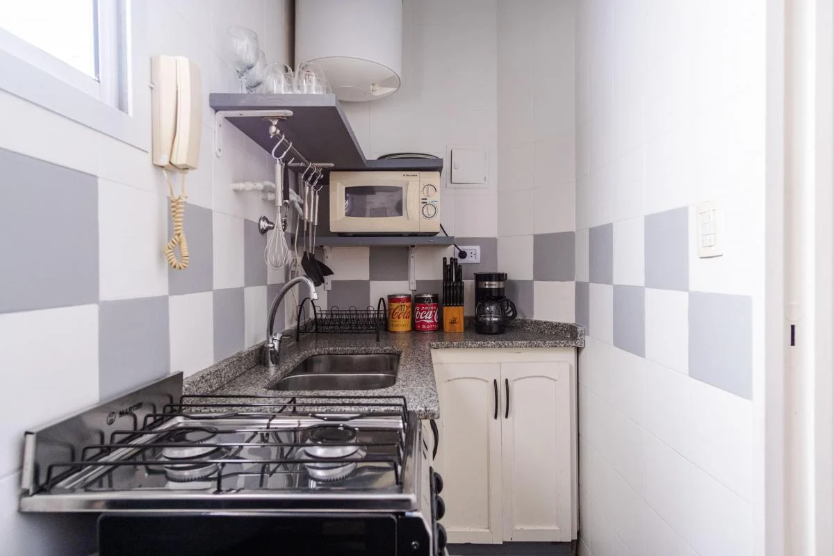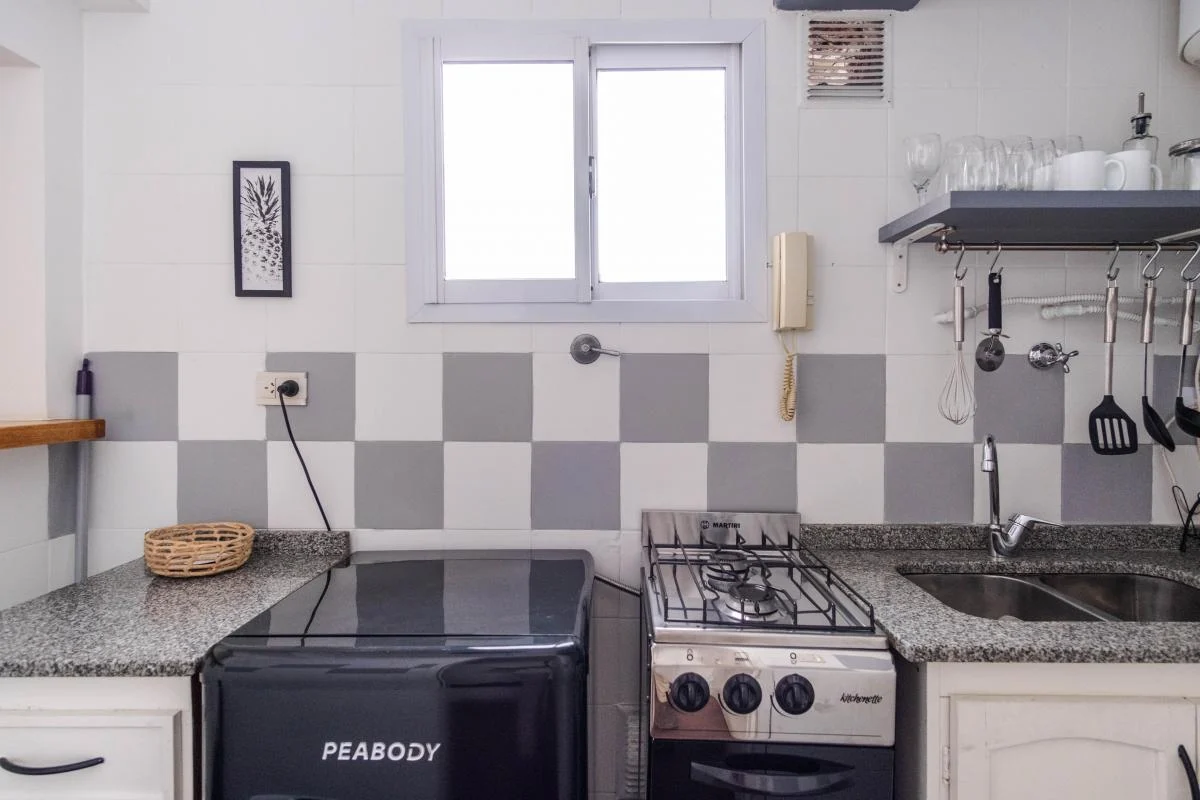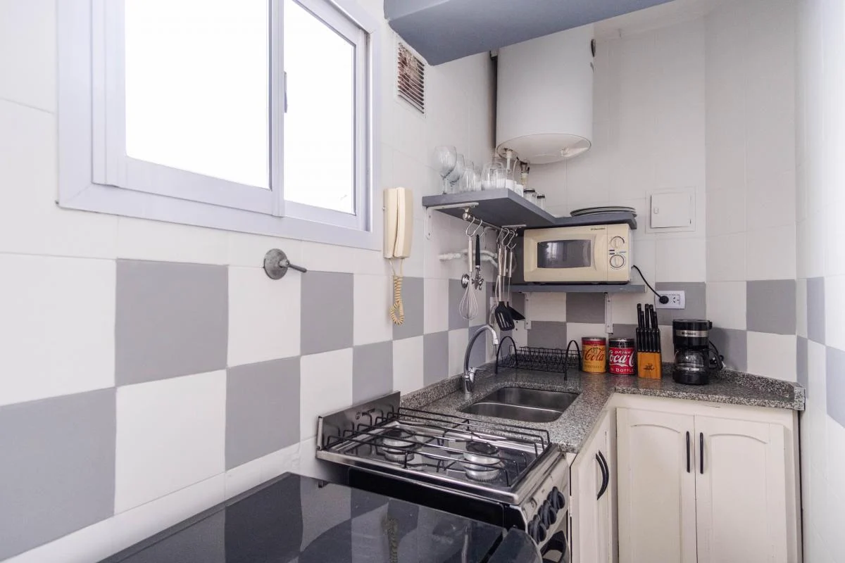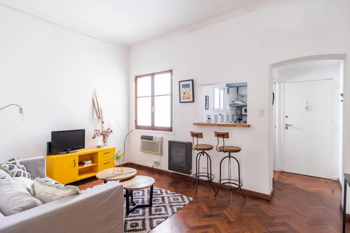 Living – comedor con cocina con barra Calefaccion vitroconvector y radiador a gas.