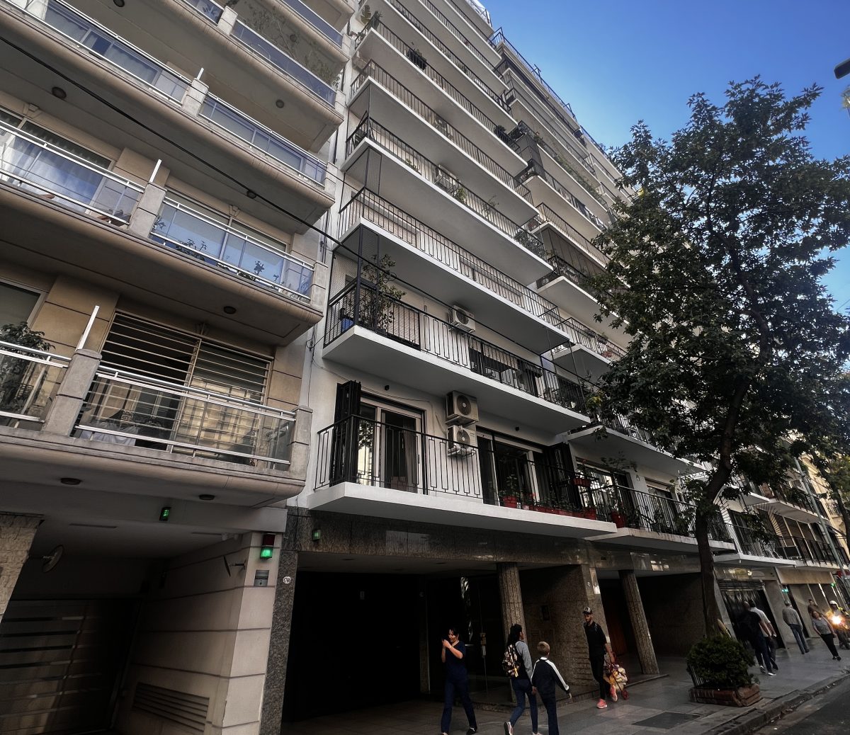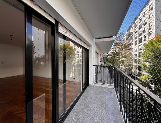 Palier privado, recepción apaisada con salida a balcón, mirando Embajada Rusa y cielo. Dormitorio en Suite misma vista y balcón.